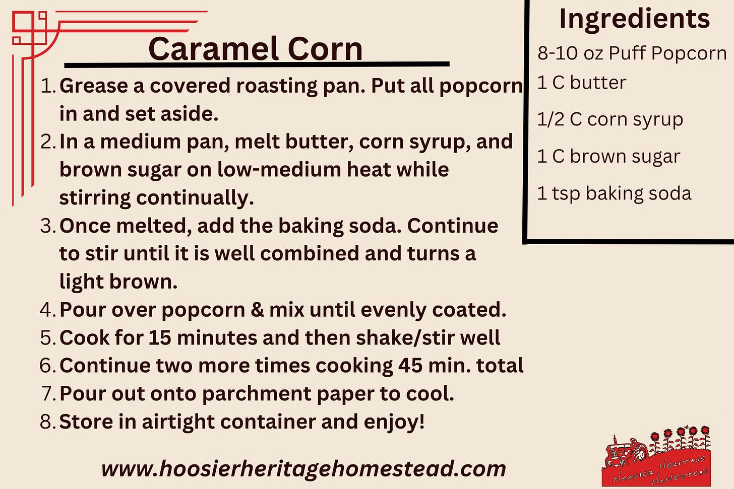 Home CookingCaramel CornElizabeth ColeyNov 23, 2024ShareThanks for reading Hoosier Heritage Homestead! Subscribe for free to receive new posts and support my work.Subscribe